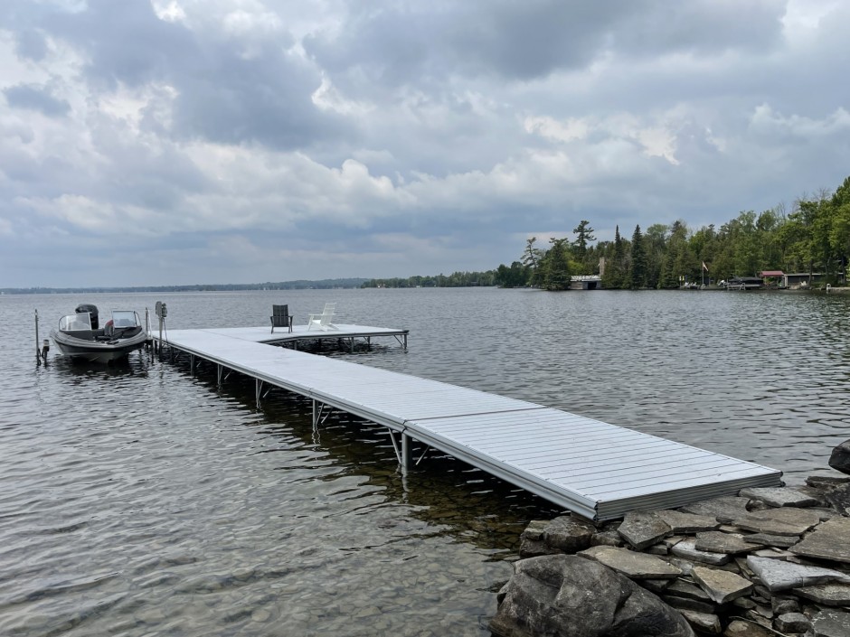 This attractive light weight dock is perfect for smaller lakes and calm waters complimenting any shoreline. The all aluminum frame will remain rust free and is fully extendable in length and width. One of the best features is that no nuts and bolts are required to join the sections. The extruded aluminum sides provide a neat, streamlined appearance.